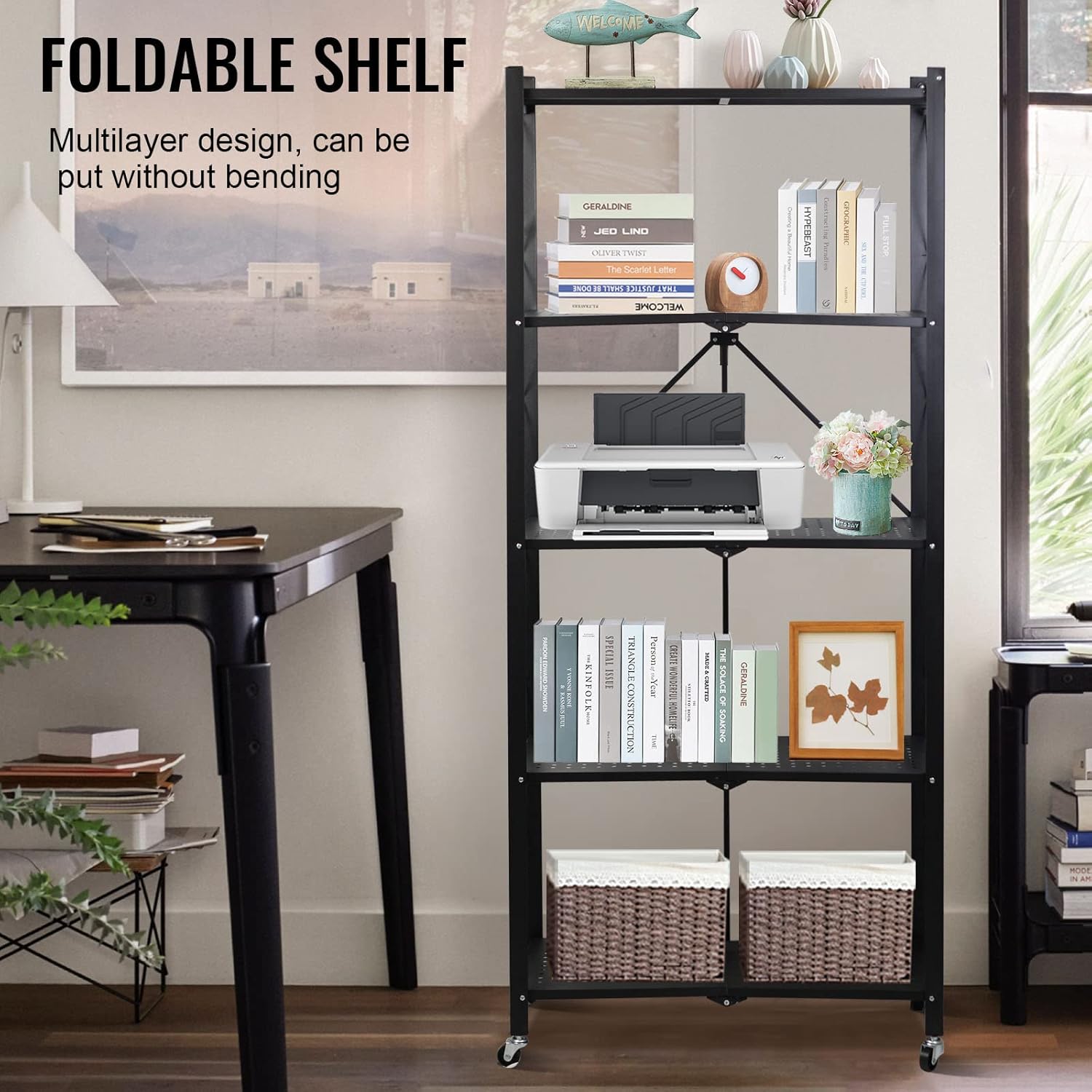 - Easy to Use: This 5-shelf storage rack is 100% pre-assembled, can be folded or unfolded in seconds without any tools. Shelving for almost anywhere in your home and easily folds flat for storage when not in use.