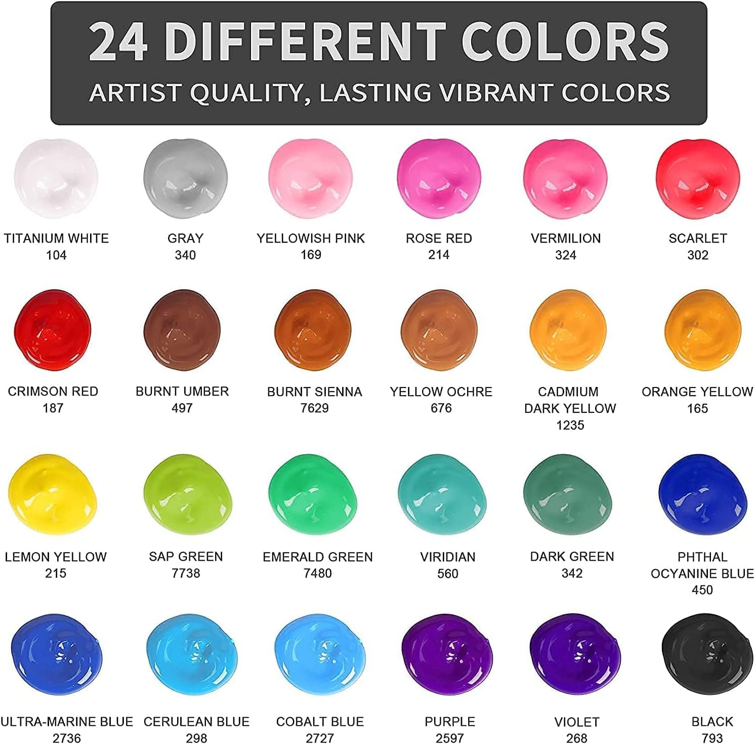 - Artist-grade Masterpiece Collection- With 24 tubes of 12 ml each paint set acrylic, you'll have everything you need to explore your creativity and bring your vision to life. Our art set paint includes a wide range of colors to suit any project or mood.
