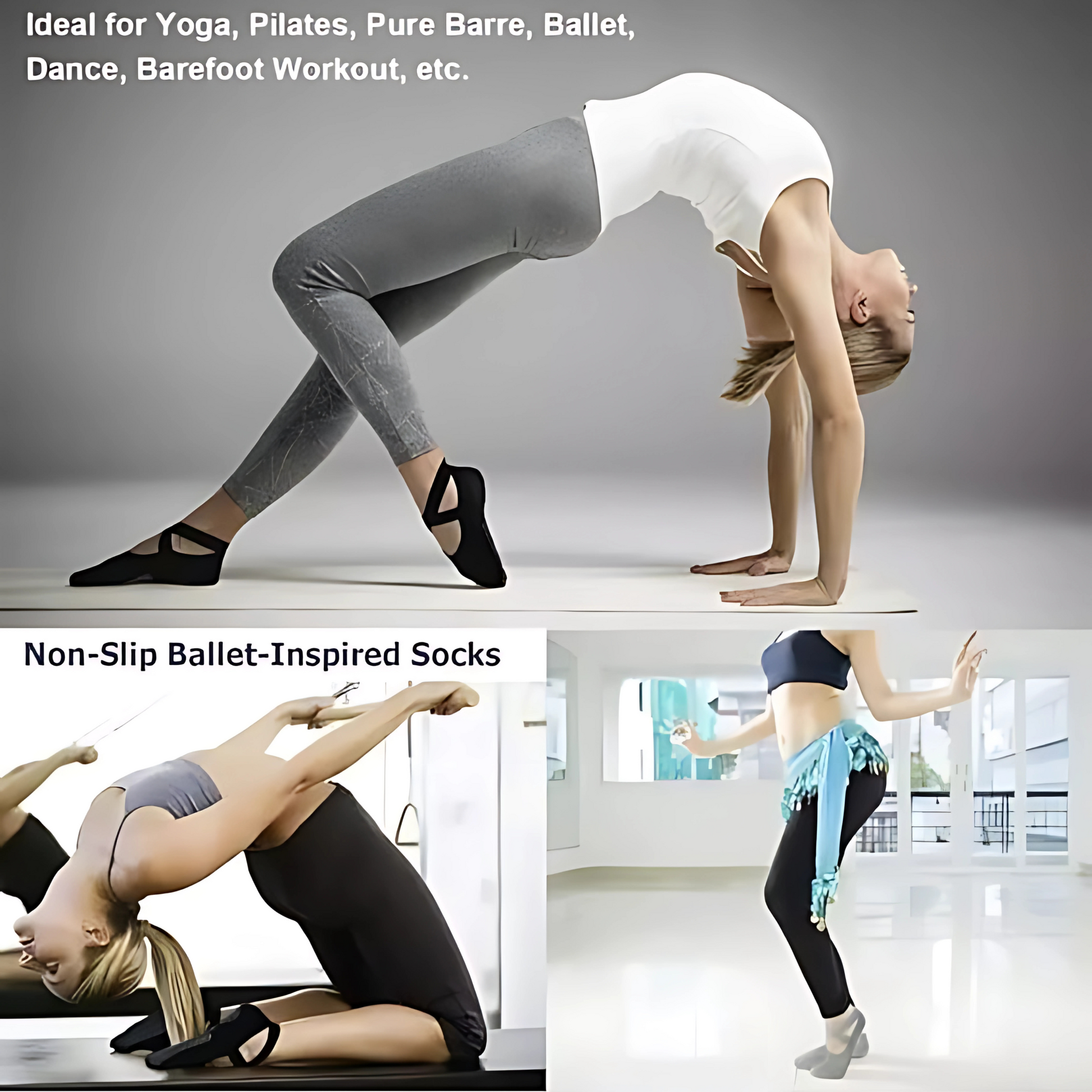 - 【Boost Stability & Balance】:These smartly designed yoga socks add extra stability for exercises ranging from Pilates and yoga to tumbling. They include sticky grip dots all over the sole.The ankle strap keeps them firmly on your feet.
